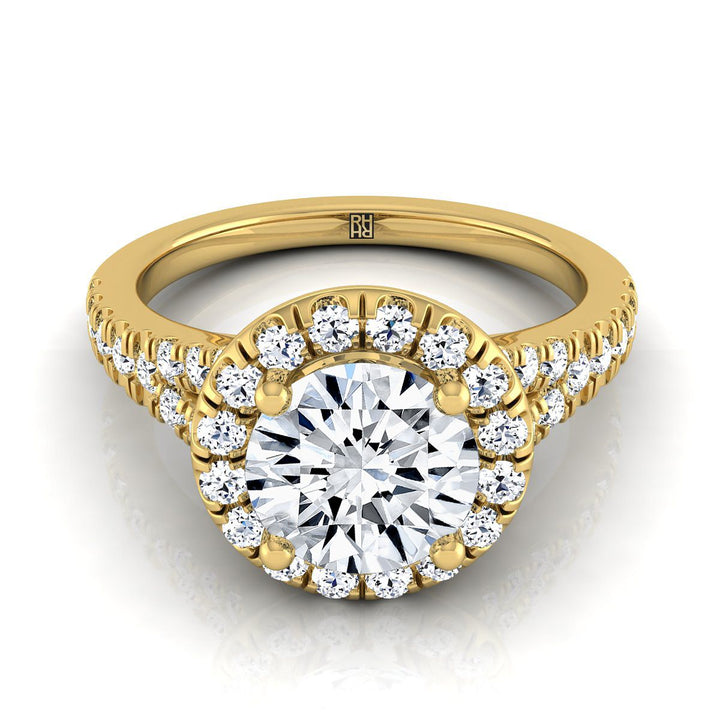 14K Yellow Gold Round Brilliant Diamond Simple Prong Halo with Petite Split Shank Pave Engagement Ring -1/2ctw