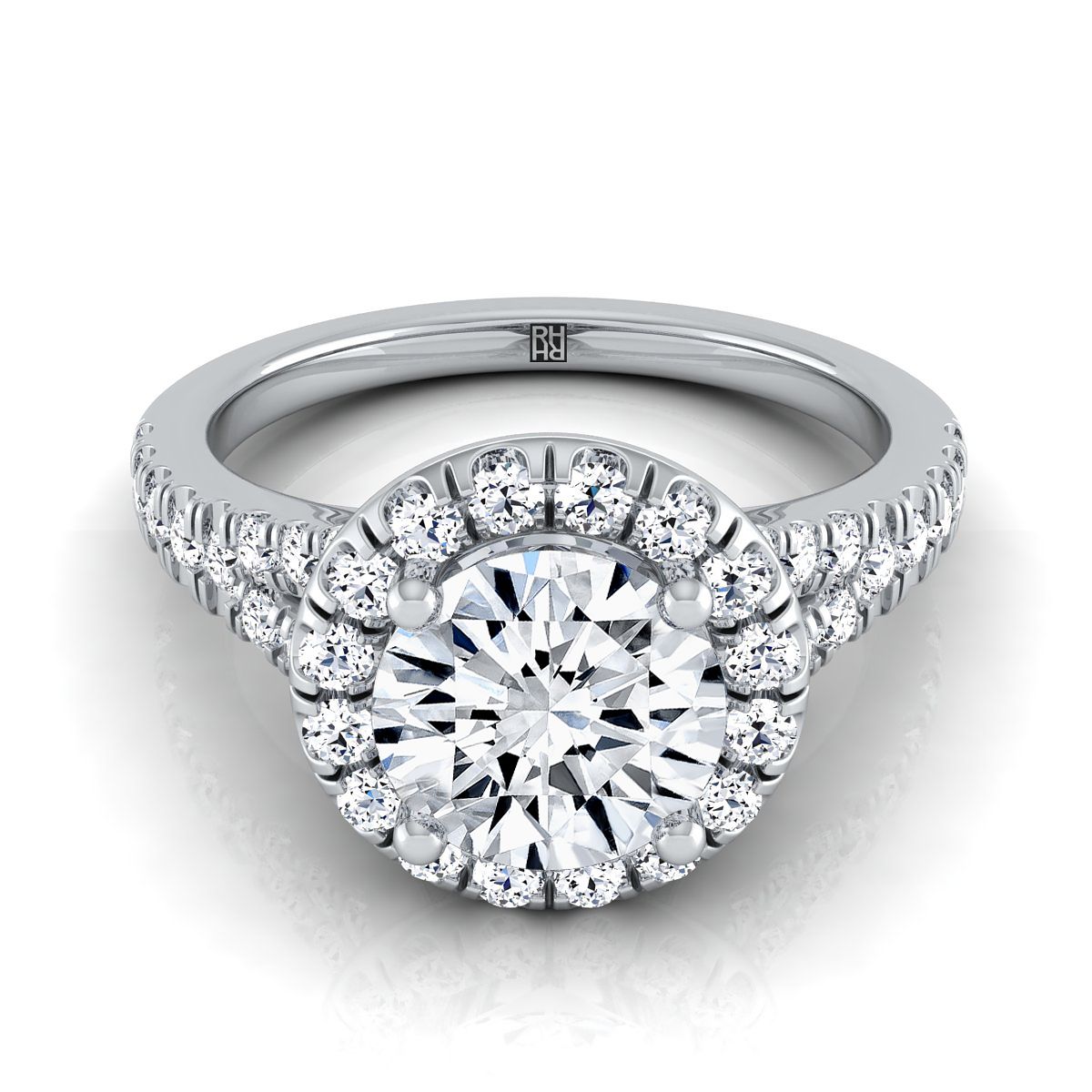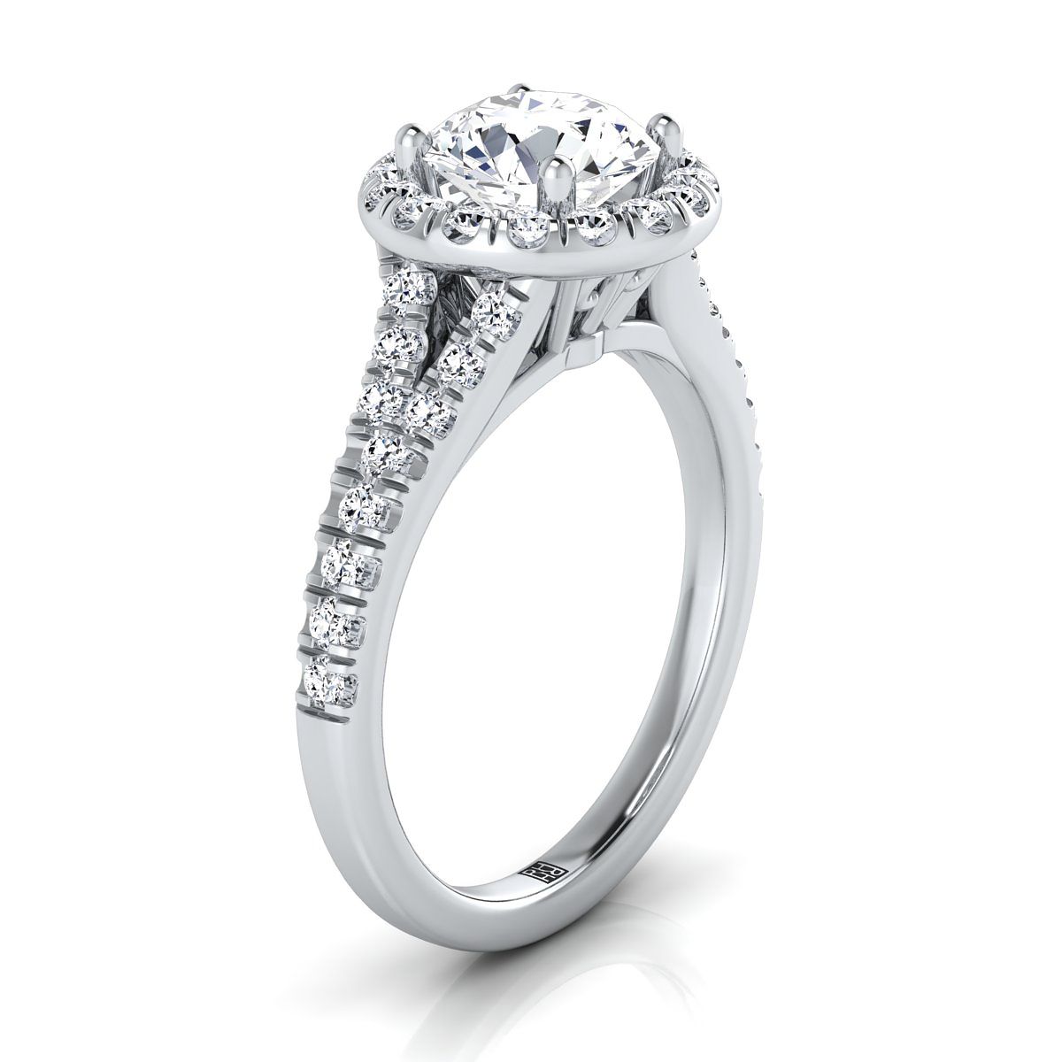 18K White Gold Round Brilliant Diamond Simple Prong Halo with Petite Split Shank Pave Engagement Ring -1/2ctw