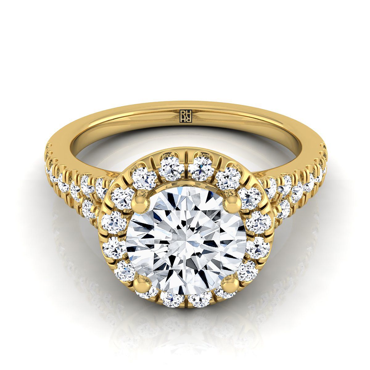 18K Yellow Gold Round Brilliant Diamond Simple Prong Halo with Petite Split Shank Pave Engagement Ring -1/2ctw