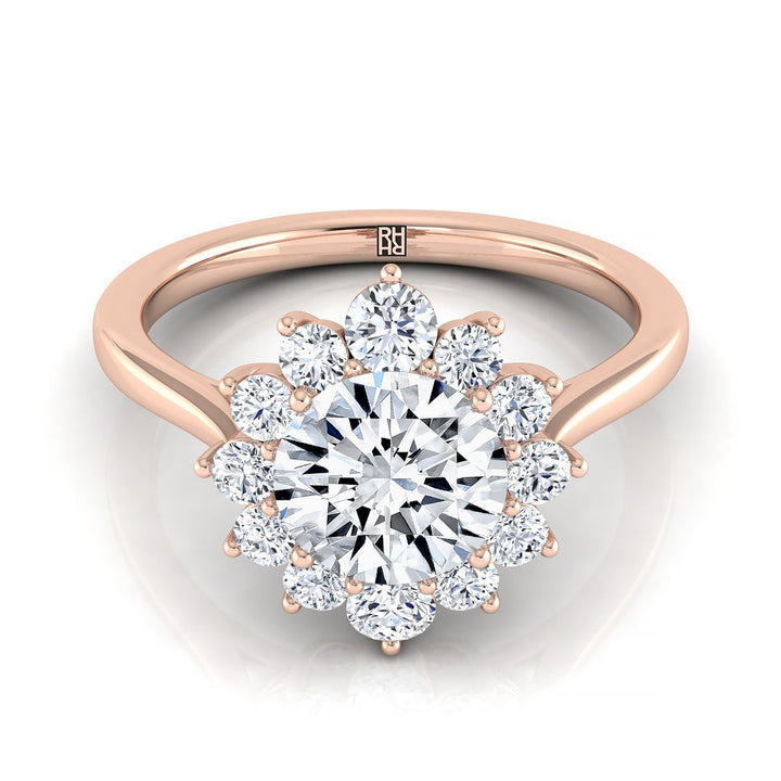 14K Rose Gold Round Brilliant Diamond Floral Halo Engagement Ring -1/2ctw