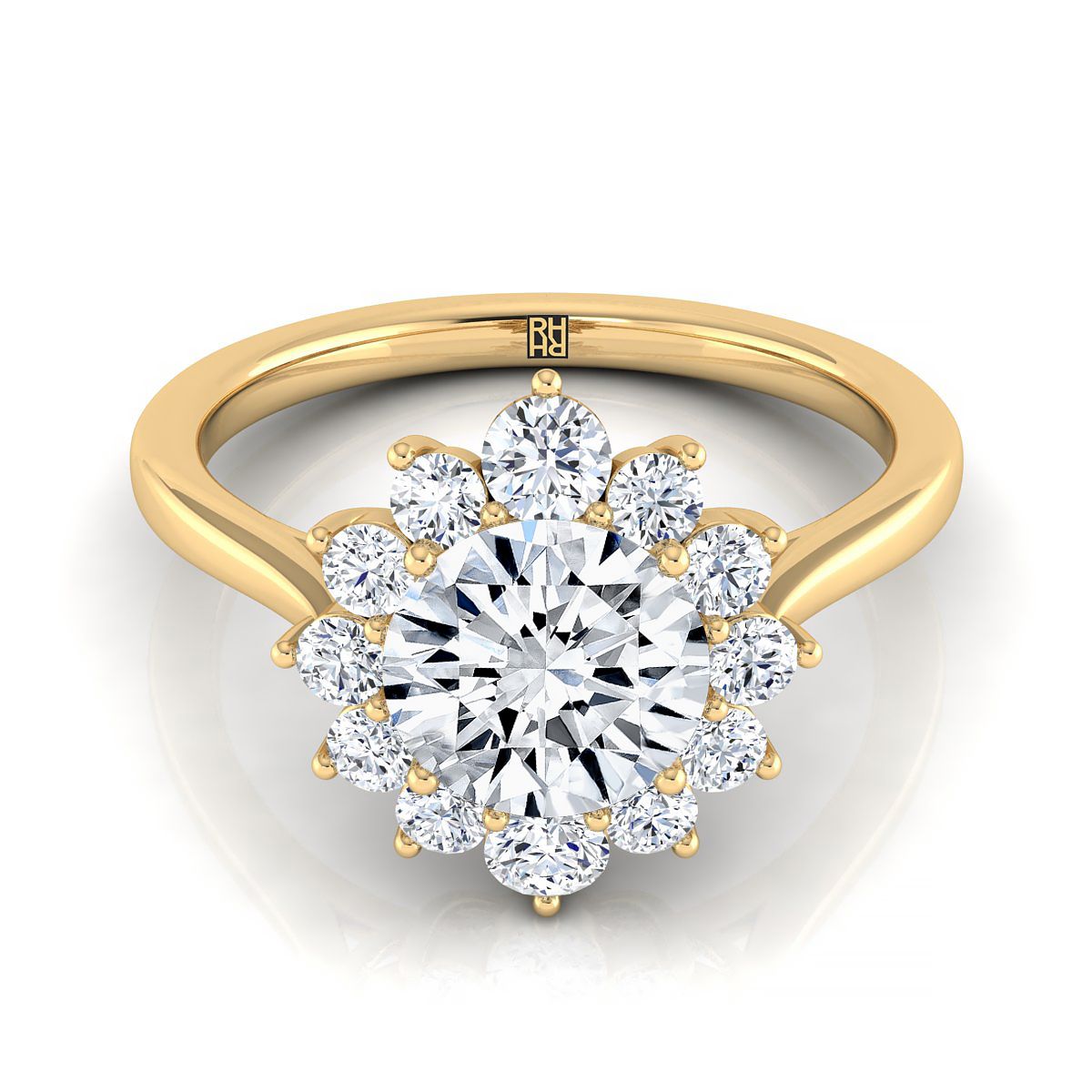 14K Yellow Gold Round Brilliant Diamond Floral Halo Engagement Ring -1/2ctw
