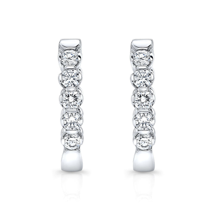 14 karat white gold hinged back oval hoop diamond earrings