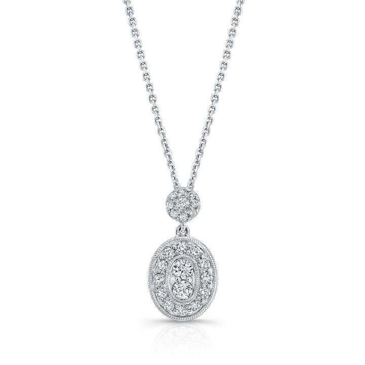 Diamond Oval Halo Dangle Pendant In 14k White Gold 0.33ctw 18 Inch Curb Chain