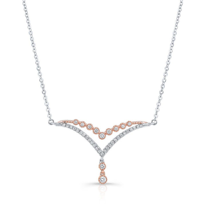 Diamond Pave And Prong Double Chevron Necklace In 14k White And Rose Gold, 16-18 Inch