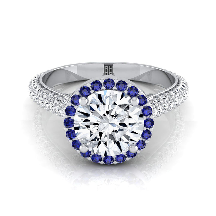 Exquisitely Handcrafted, This Diamond Engagement Ring With Sapphire Accented Halo Showcases Brilliant Cut Diamonds (h-i/vs 0.75ctw) Beautifully Pave Set In A Classic 14k White Gold Setting