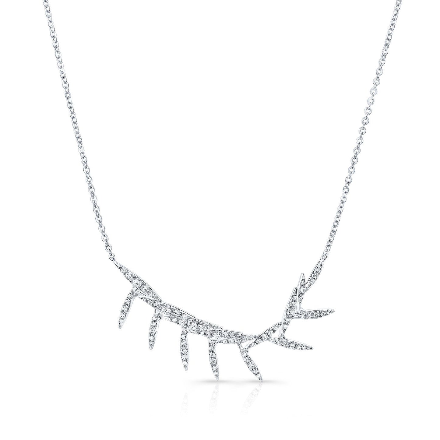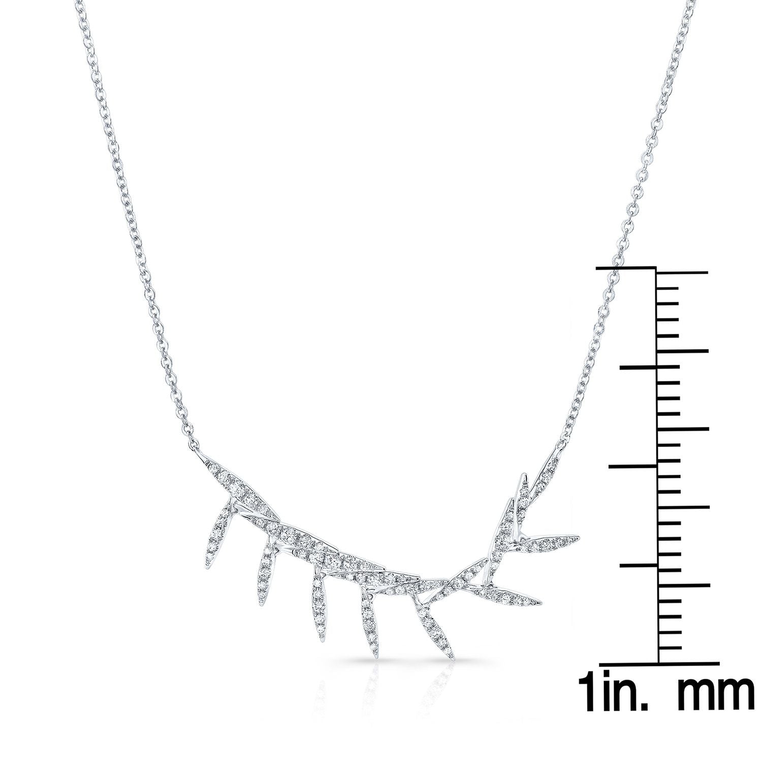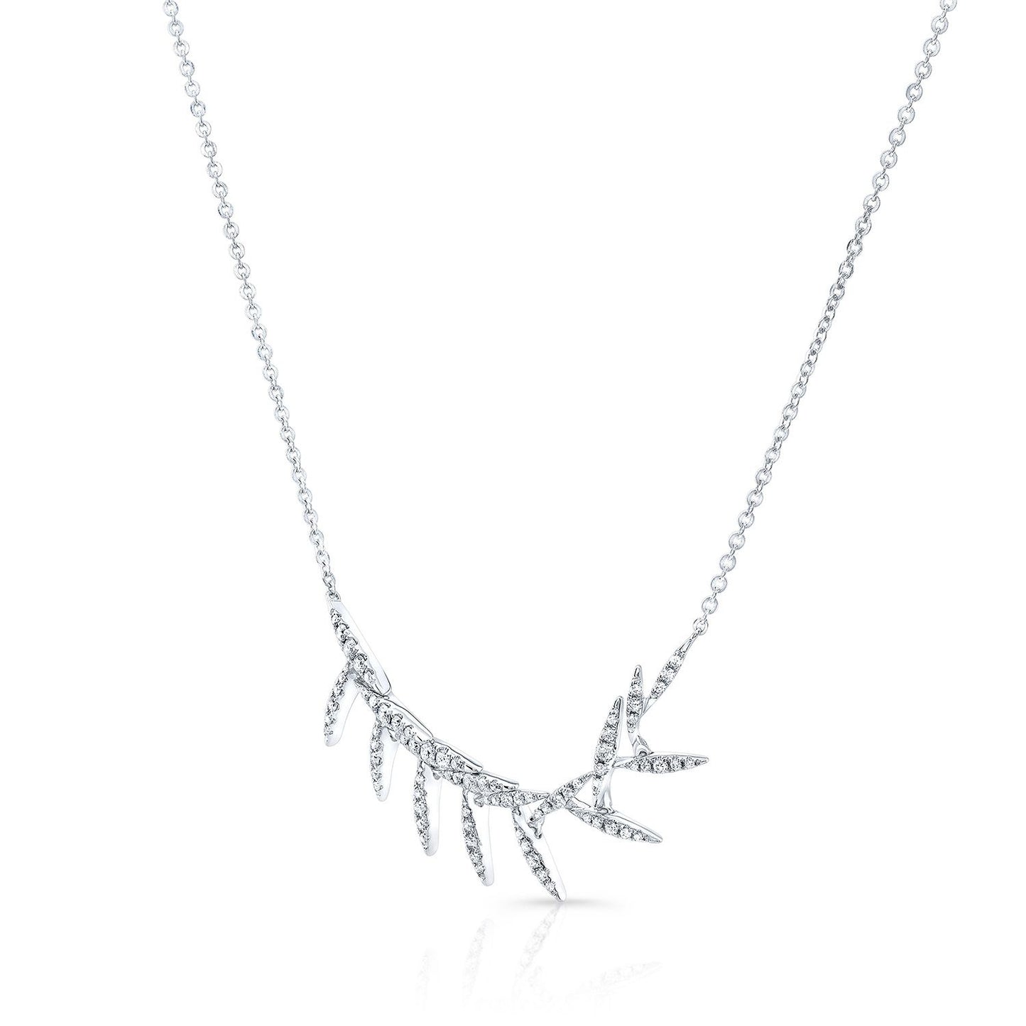 Diamond Pave Floating Laurel Leaves Necklace In 14k White Gold (16-18 Adj Chn)
