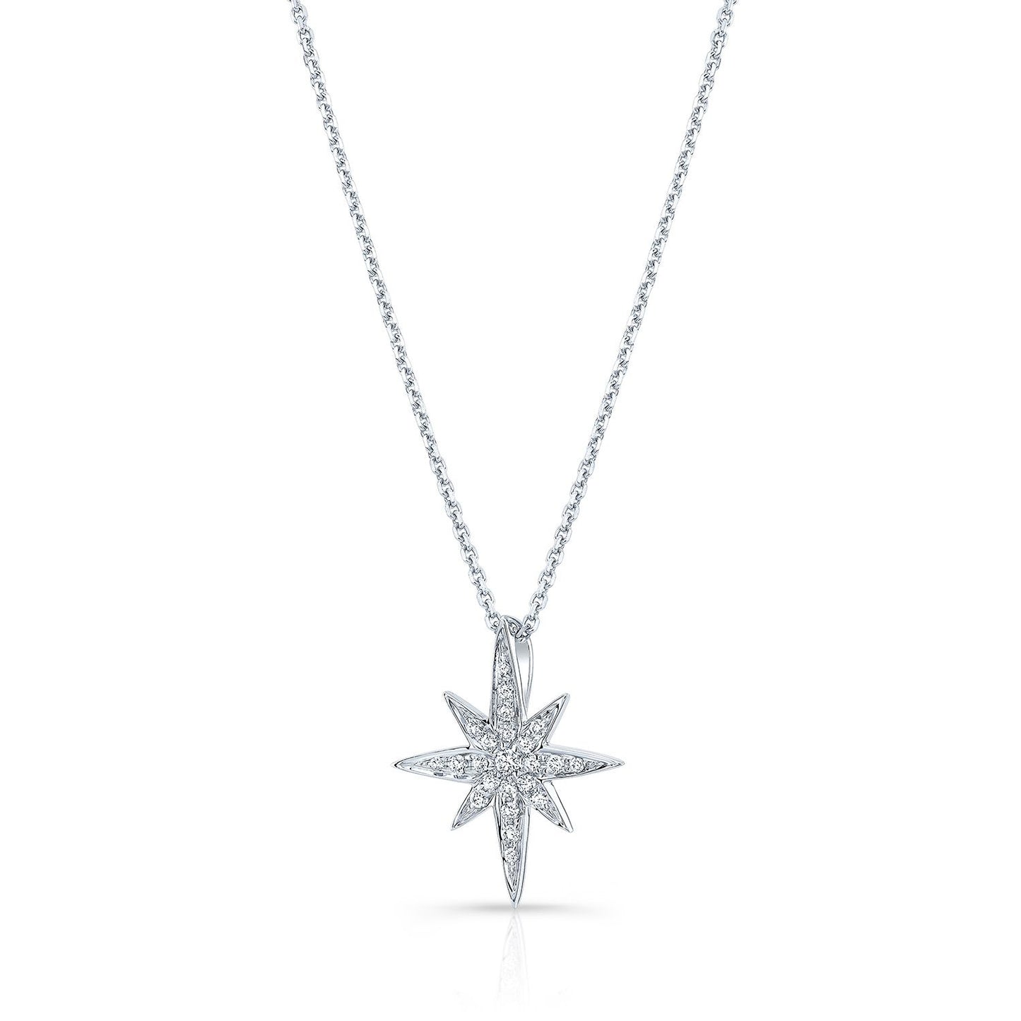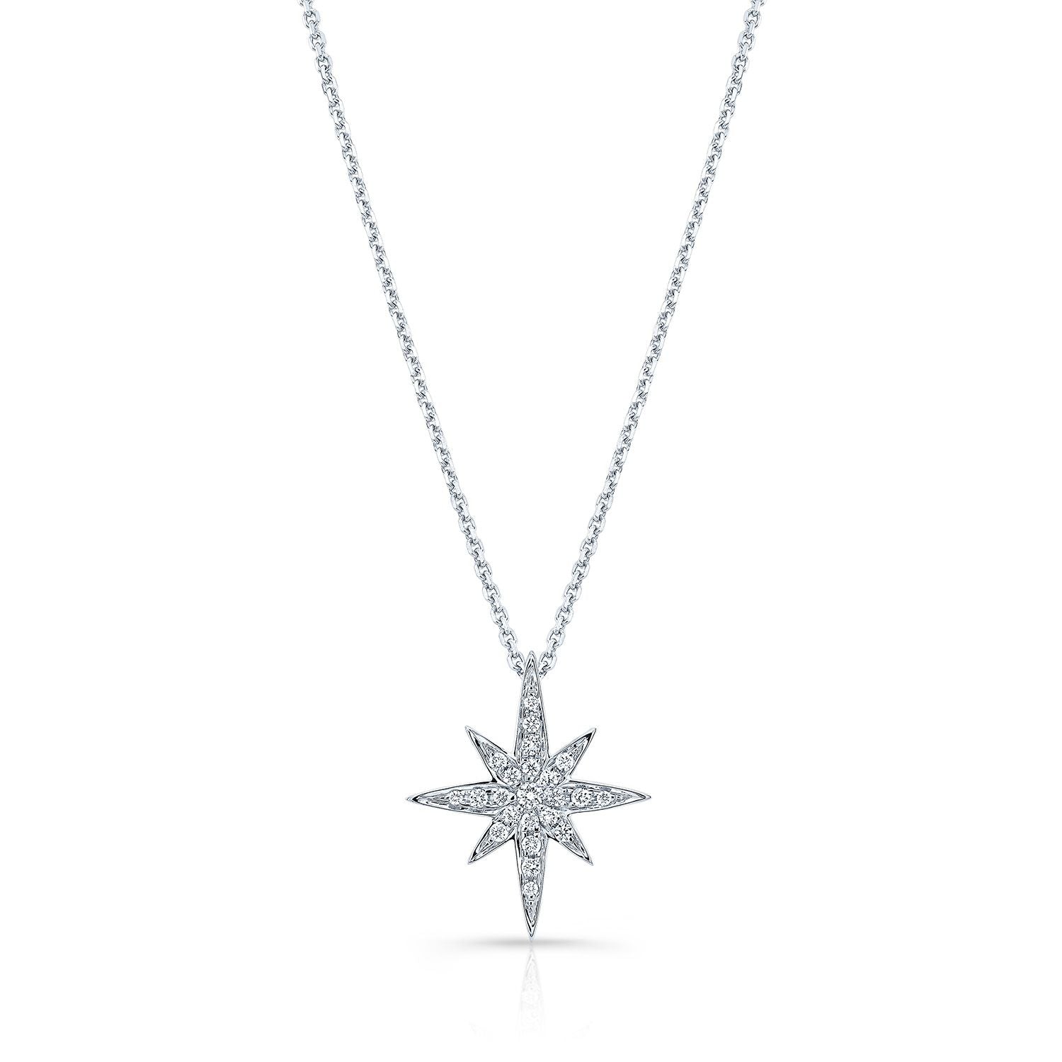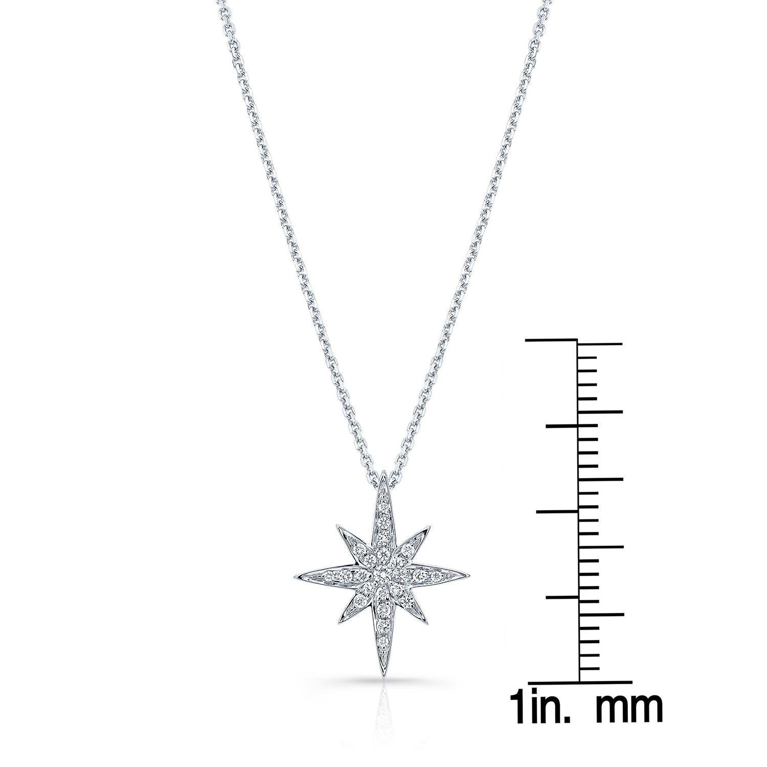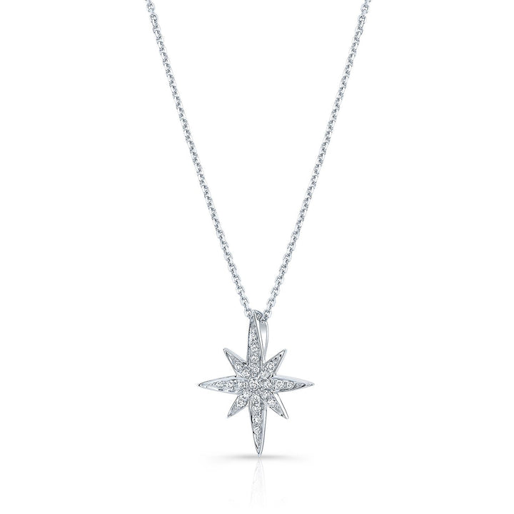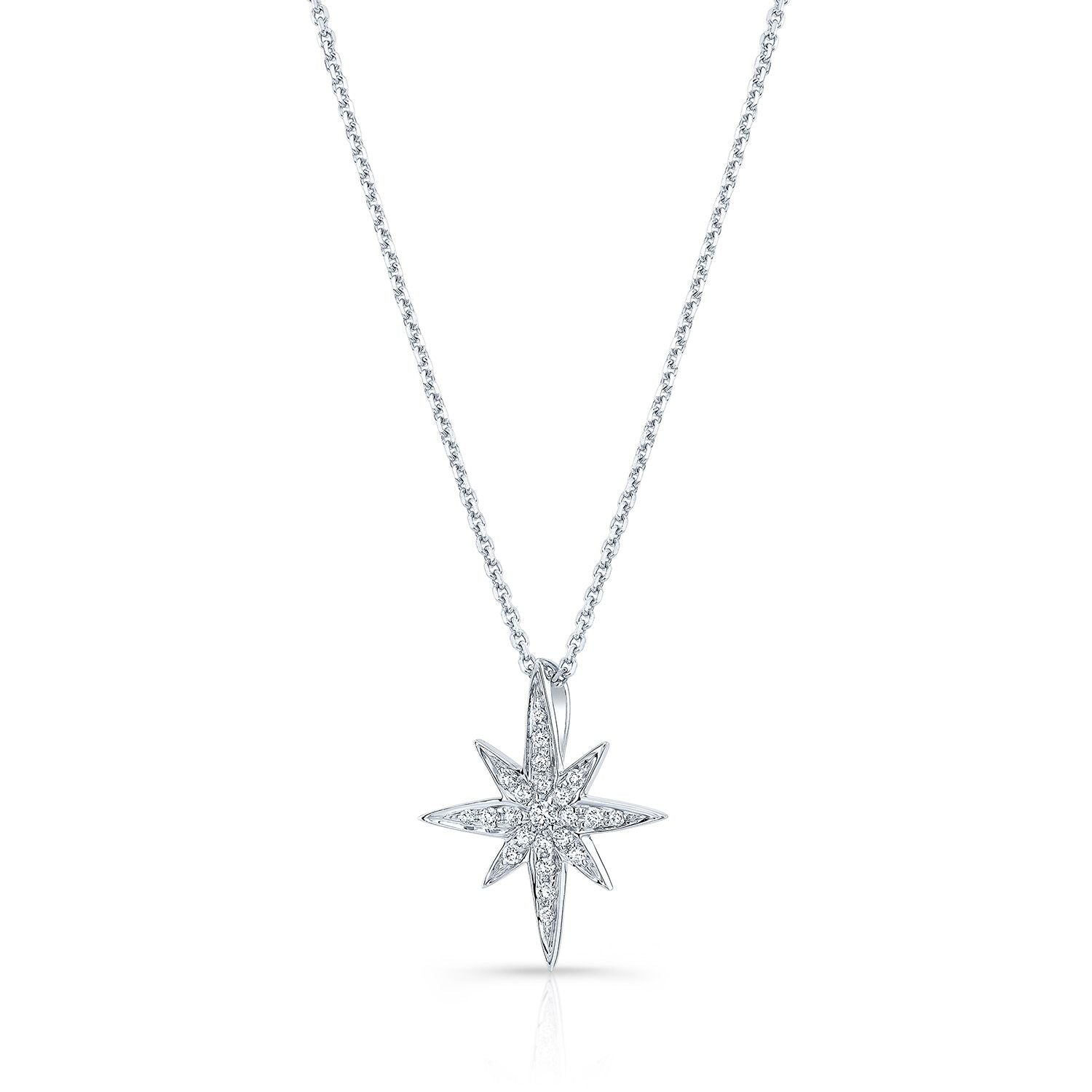 Diamond Pave North Star Pendant In 14k White Gold, 17-inch Chain