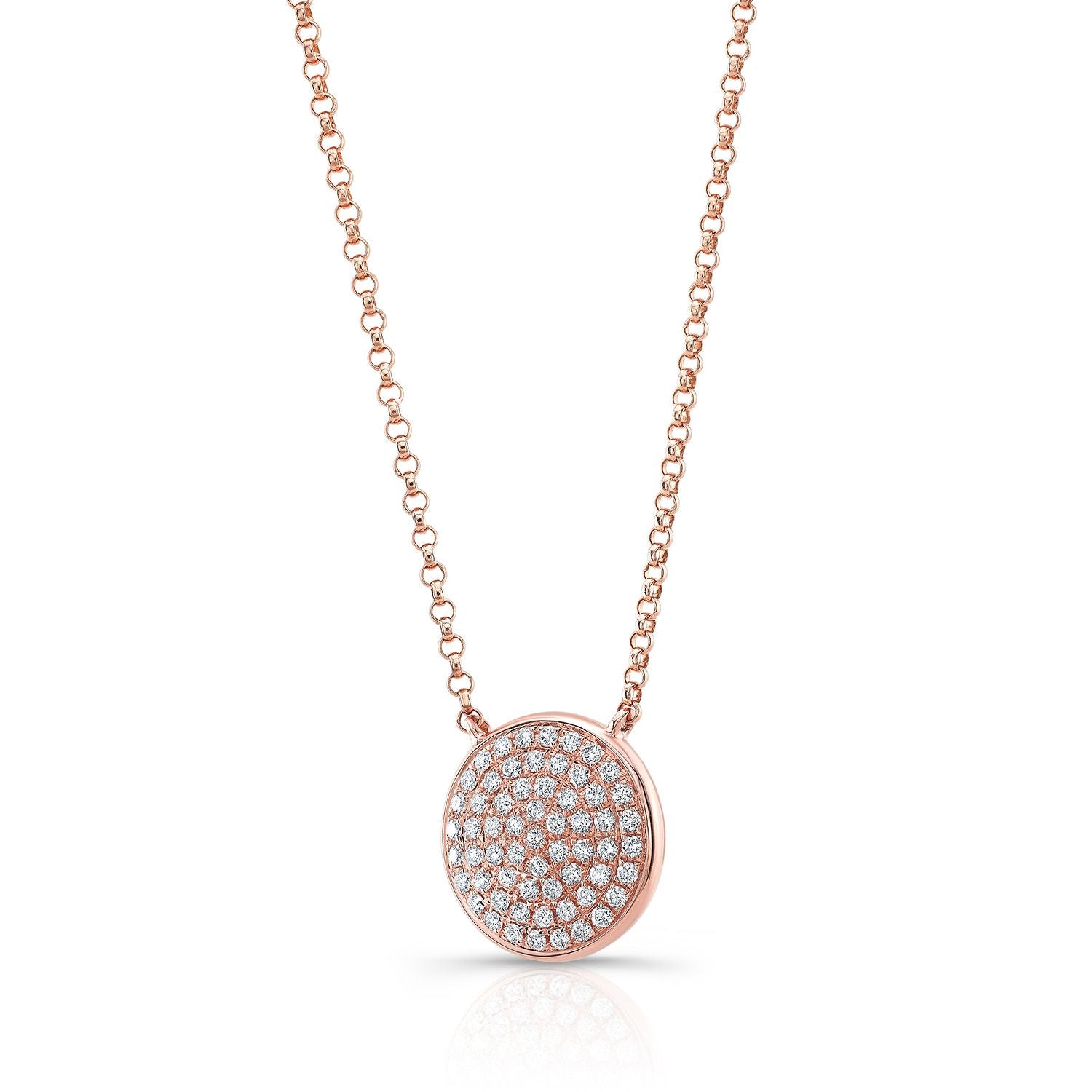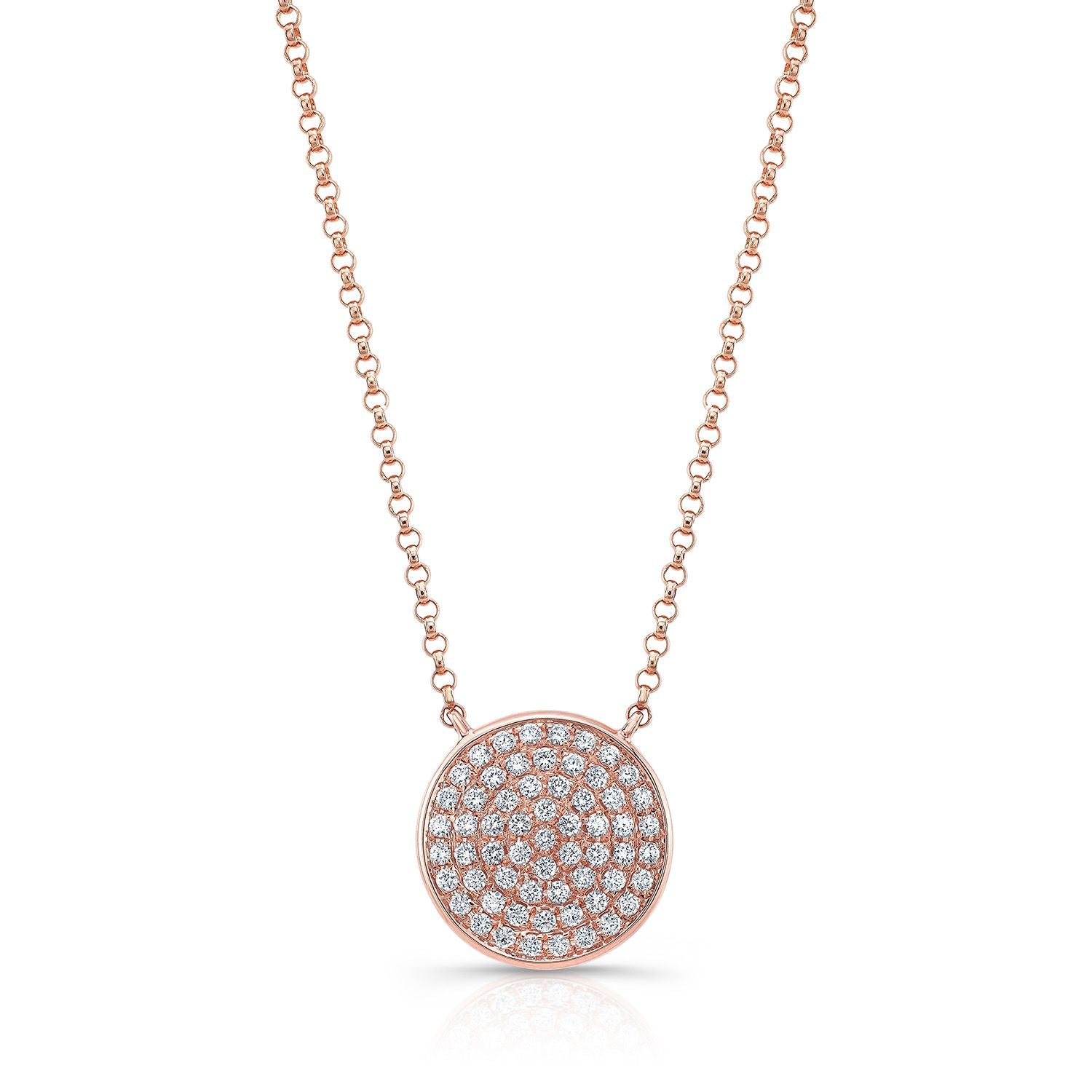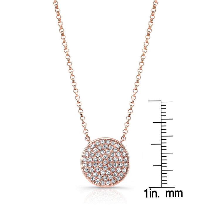 Diamond Pave Round Disk Necklace In 14k Rose Gold, 18 Inch