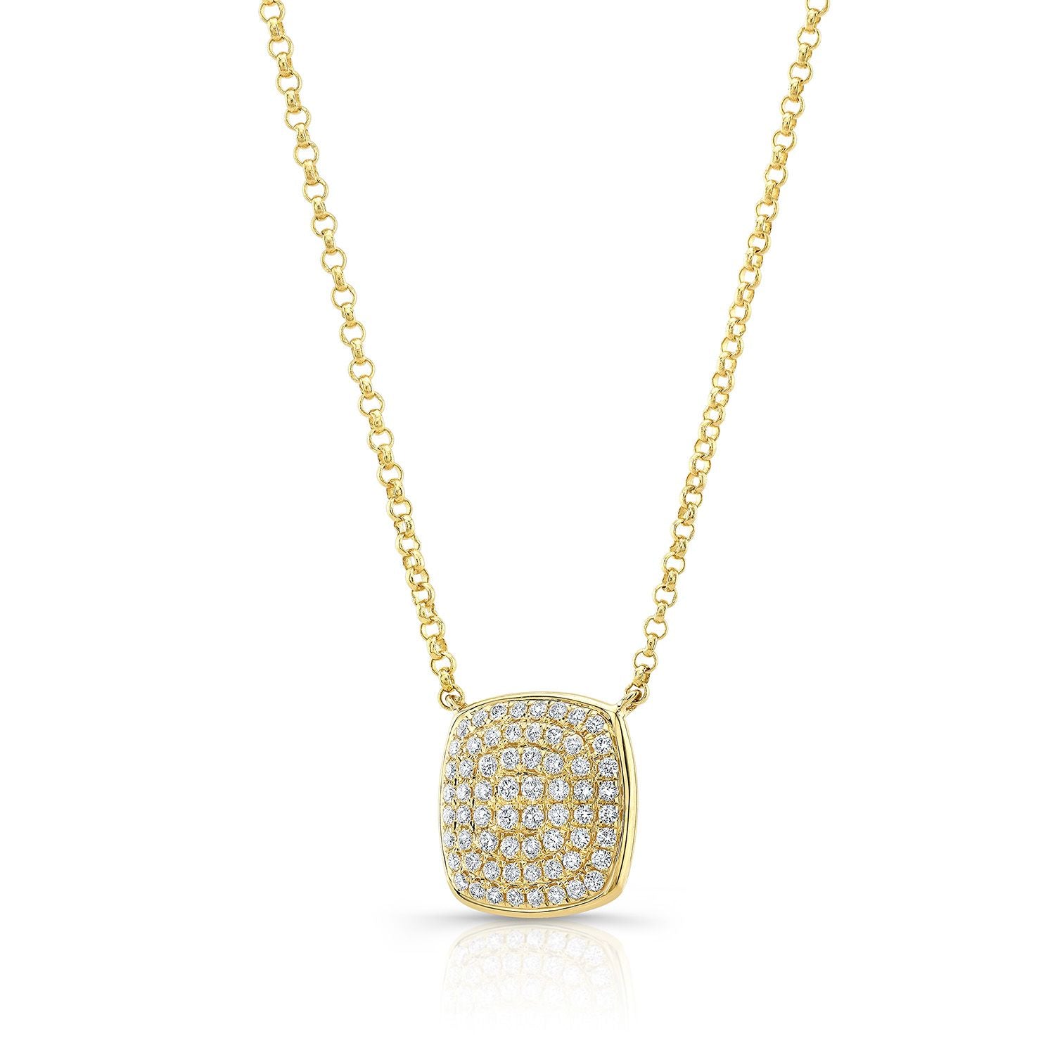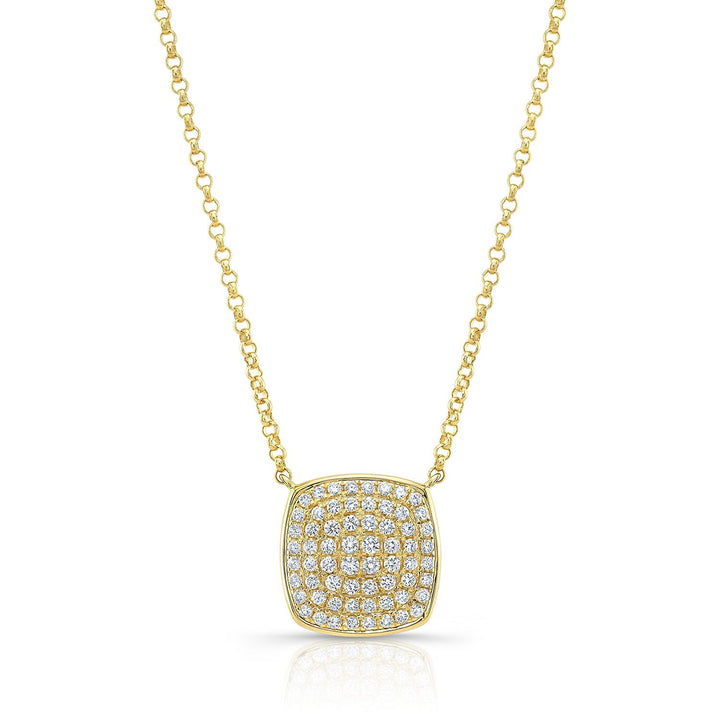 Diamond Pave Rounded Square Disk Necklace In 14k Yellow Gold, 18 Inch