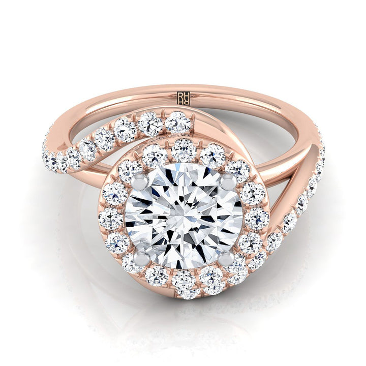 14K Rose Gold Round Brilliant Diamond French Pave Swirl Twist Halo Engagement Ring -1/2ctw