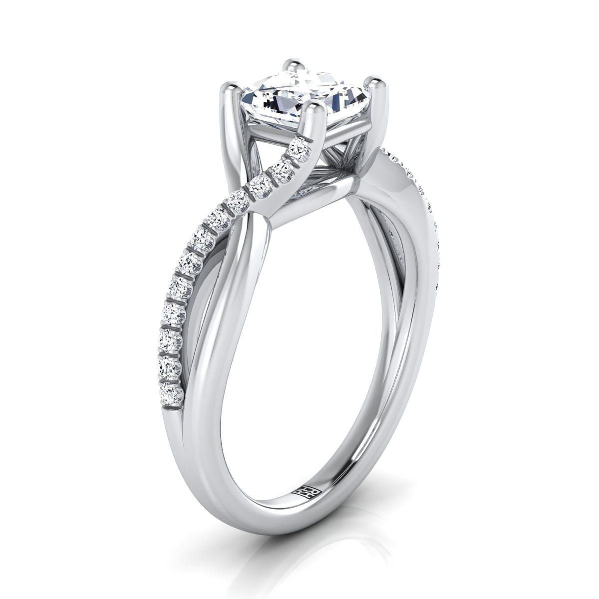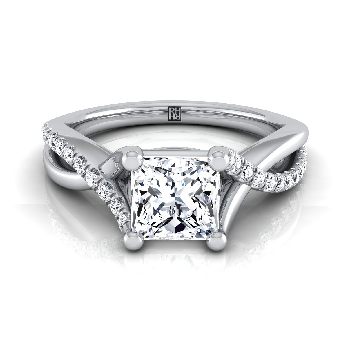 Exquisitely Handcrafted, This Princess Cut Diamond Engagement Ring With Pave Infinity Shank Showcases Brilliant Cut Diamonds (h-i/vs 0.15tw) Beautifully Set In A Classic 14k White Gold Setting.