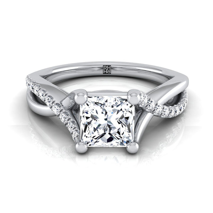 Exquisitely Handcrafted, This Princess Cut Diamond Engagement Ring With Pave Infinity Shank Showcases Brilliant Cut Diamonds (h-i/vs 0.15tw) Beautifully Set In A Classic 18k White Gold Setting.