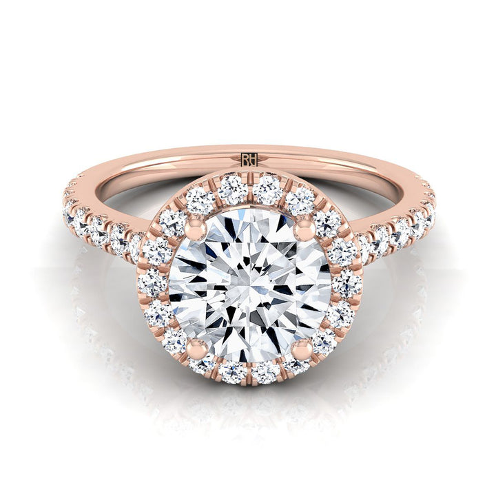 14K Rose Gold Round Brilliant Diamond Shared Prong Halo with French Pave Engagement Ring -3/8ctw