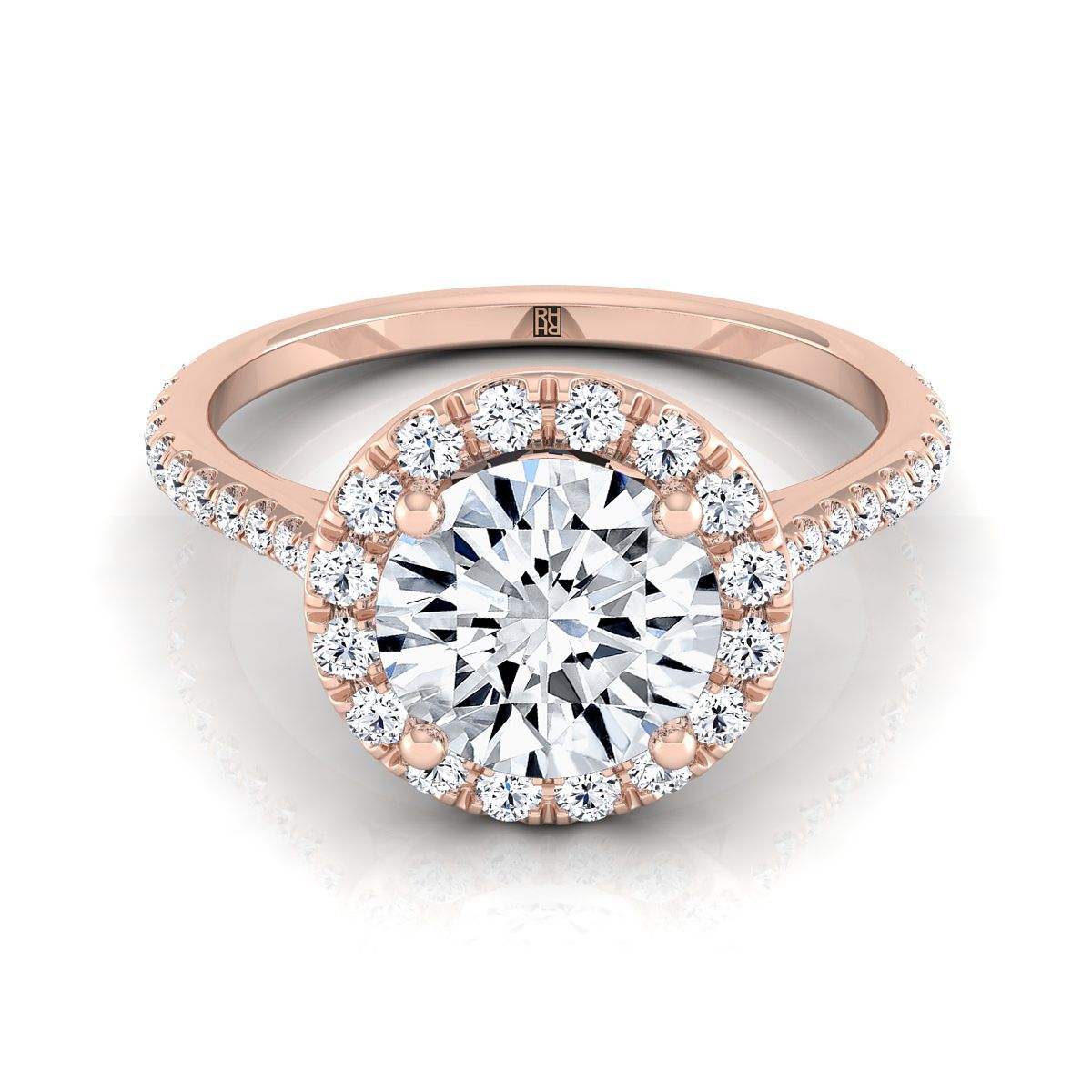 14K Rose Gold Diamond Diamond Halo Diamond Pave Engagement Ring -3/8ctw