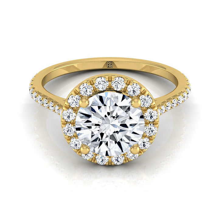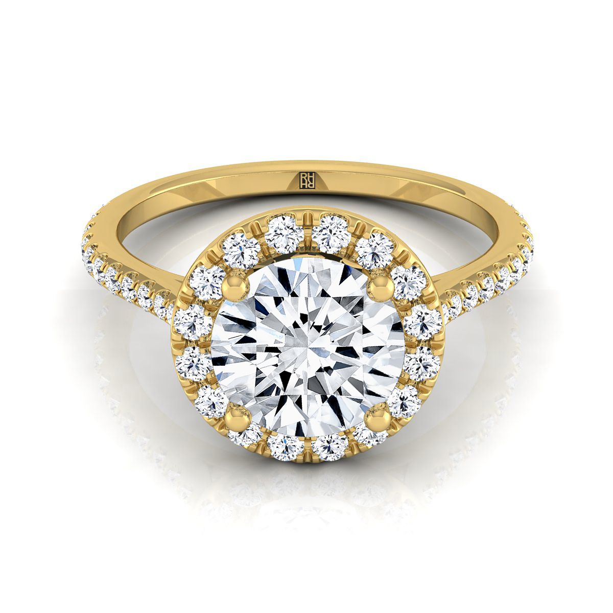 18K Yellow Gold Diamond Diamond Halo Diamond Pave Engagement Ring -3/8ctw