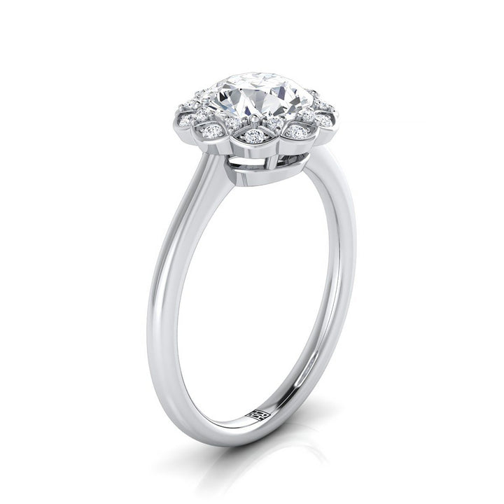 Platinum Round Brilliant Diamond Lotus Flower Halo Engagement Ring -1/10ctw