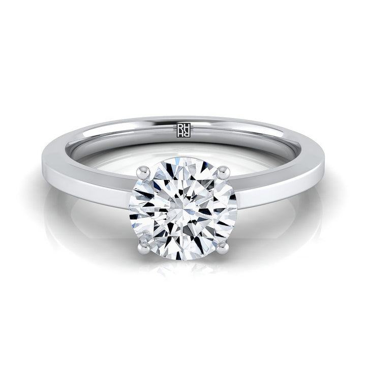 18K White Gold Round Brilliant Beveled Edge Comfort Style Bright Finish Solitaire Engagement Ring