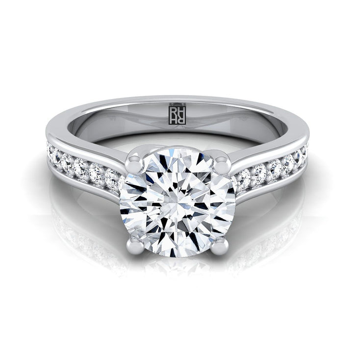 18K White Gold Round Brilliant Diamond Channel Set Engagement Ring -1/3ctw
