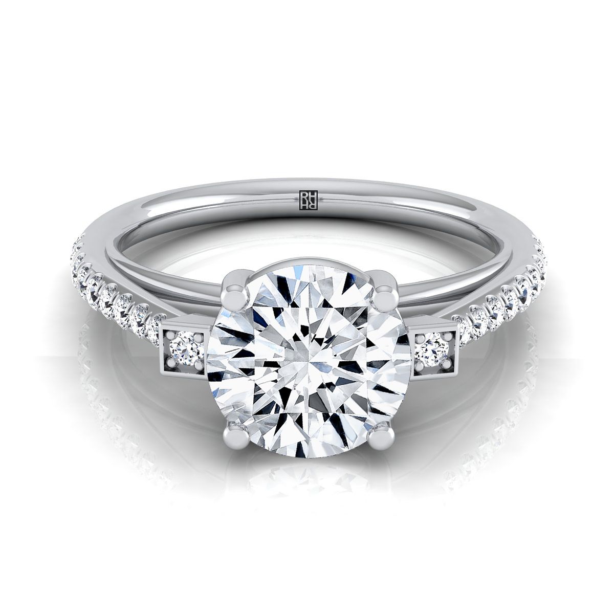 18K White Gold Round Brilliant Diamond Delicate Three Stone Pave Engagement Ring -1/3ctw