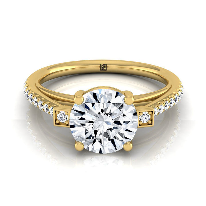 18K Yellow Gold Round Brilliant Diamond Delicate Three Stone Pave Engagement Ring -1/3ctw