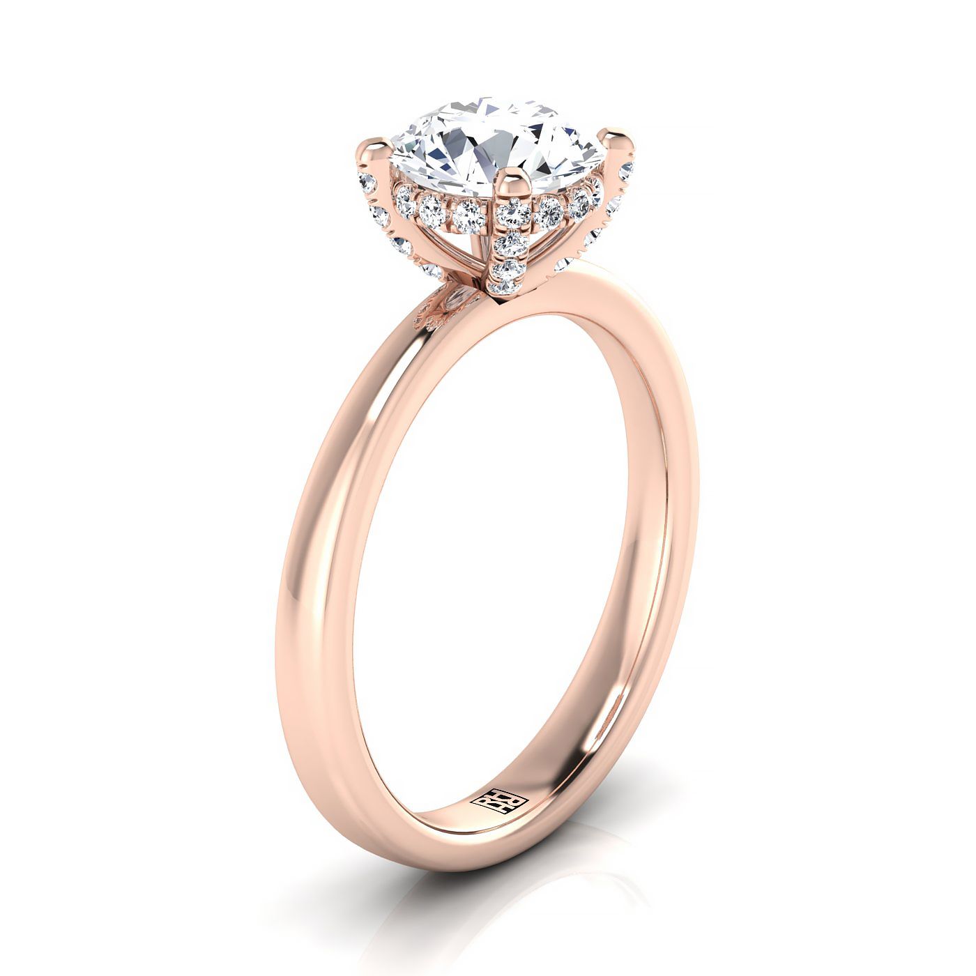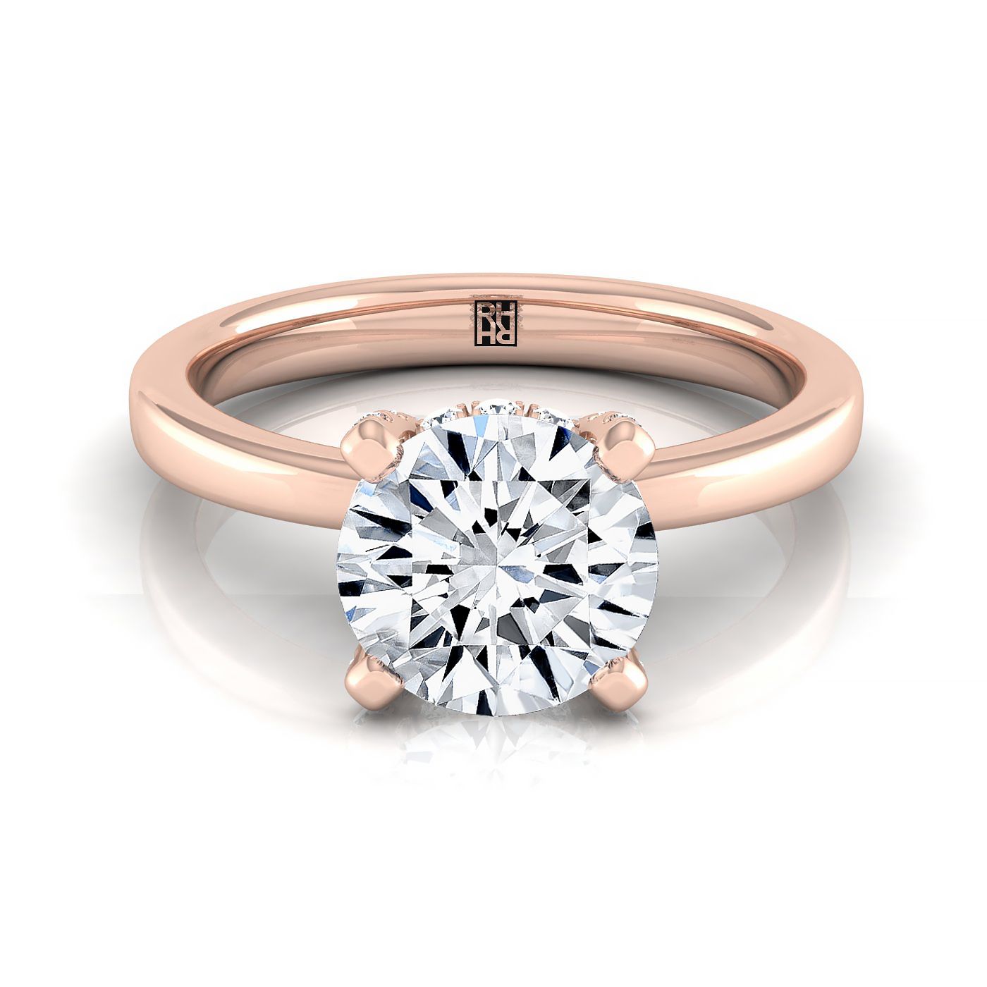 14K Rose Gold Round Brilliant Diamond Adorned Claws and Secret Halo Solitaire Engagement Ring -1/10ctw