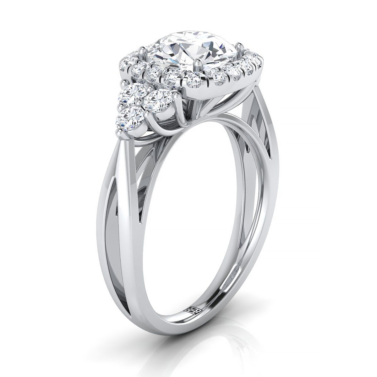 Platinum Round Brilliant Open Twisted Triple Diamond Engagement Ring -5/8ctw