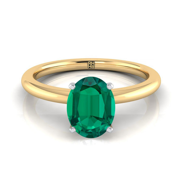 18k Yellow Gold Engagement Ring With 8 X 6 Mm Oval Emerald Center Stone And Rounded Shank And 4 Prong Setting