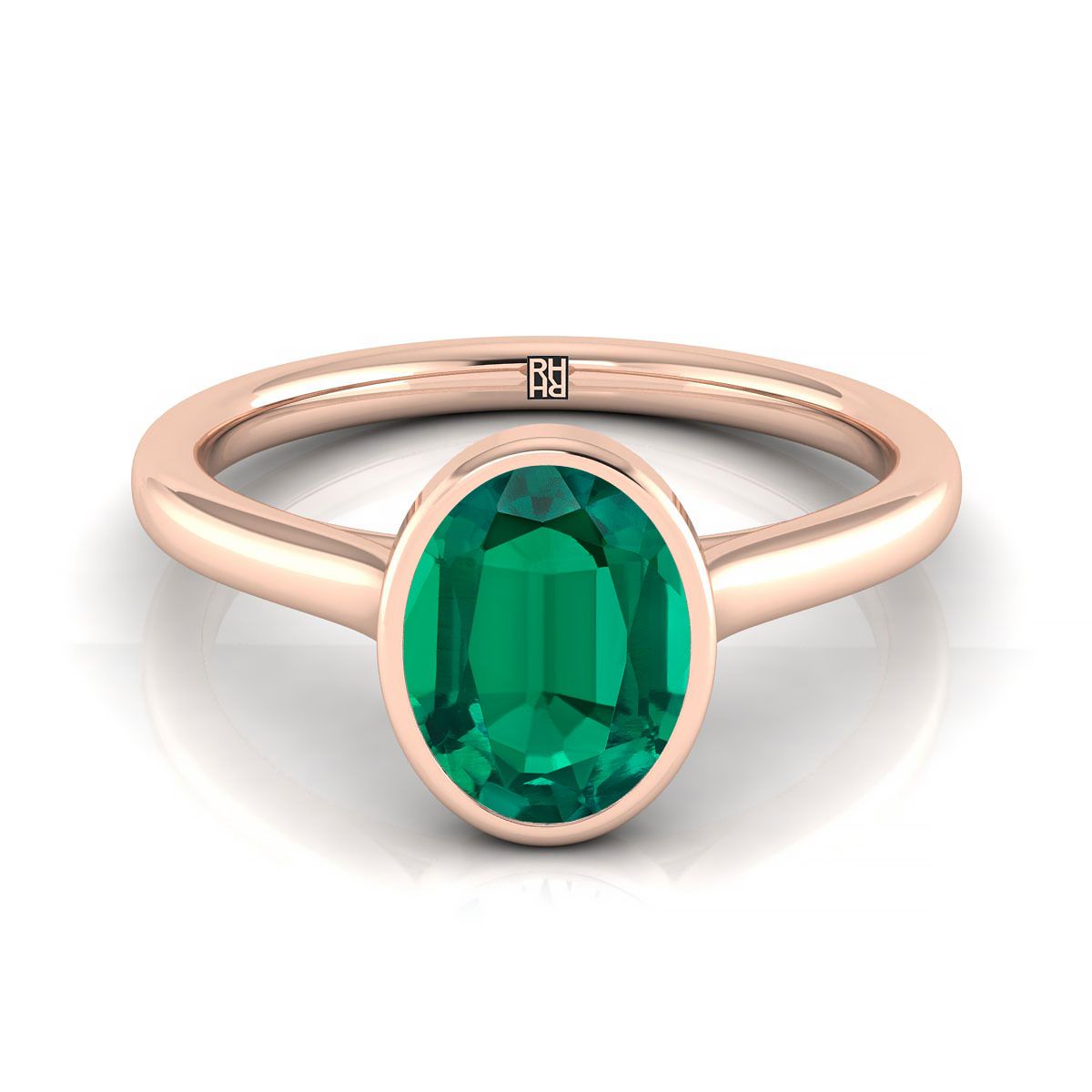 14K Rose Gold Oval Emerald Simple Bezel Solitaire Engagement Ring