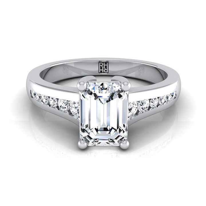 18K White Gold Emerald Cut Contemporary Tapered Diamond Channel Engagement Ring -1/6ctw