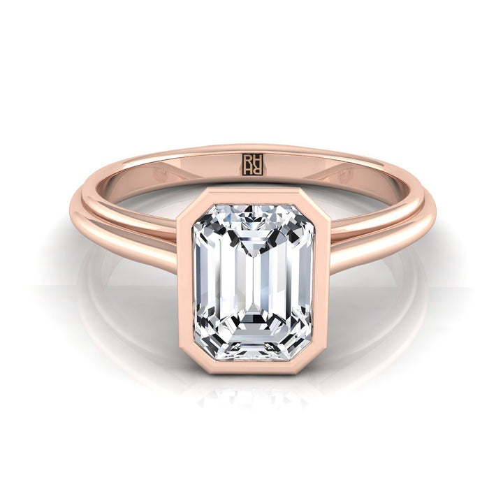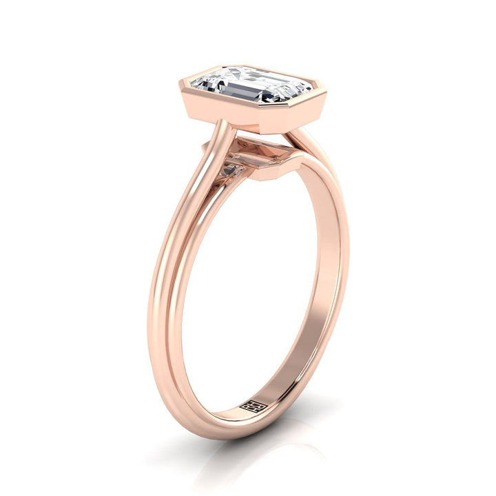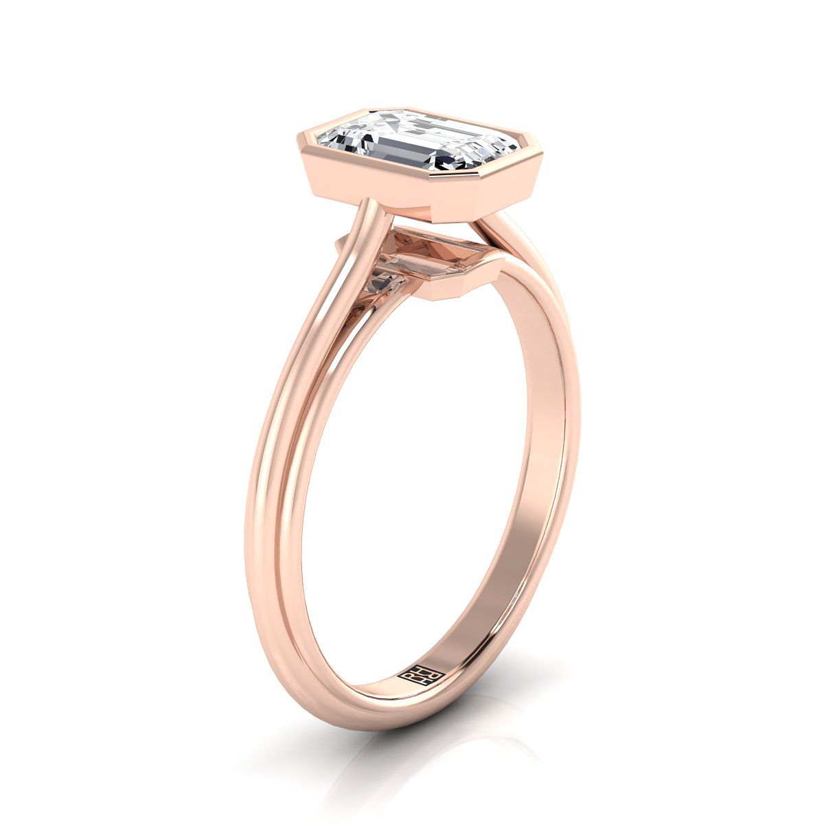 Understated Elegance, This Emerald Cut Diamond Engagement Ring Setting Showcases A Bezel Set Diamond Solitaire In A Classic 14k Rose Gold Setting.