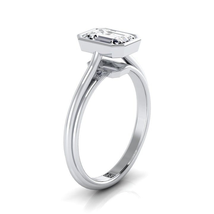 Understated Elegance, This Emerald Cut Diamond Engagement Ring Setting Showcases A Bezel Set Diamond Solitaire In A Classic Platinum Setting.
