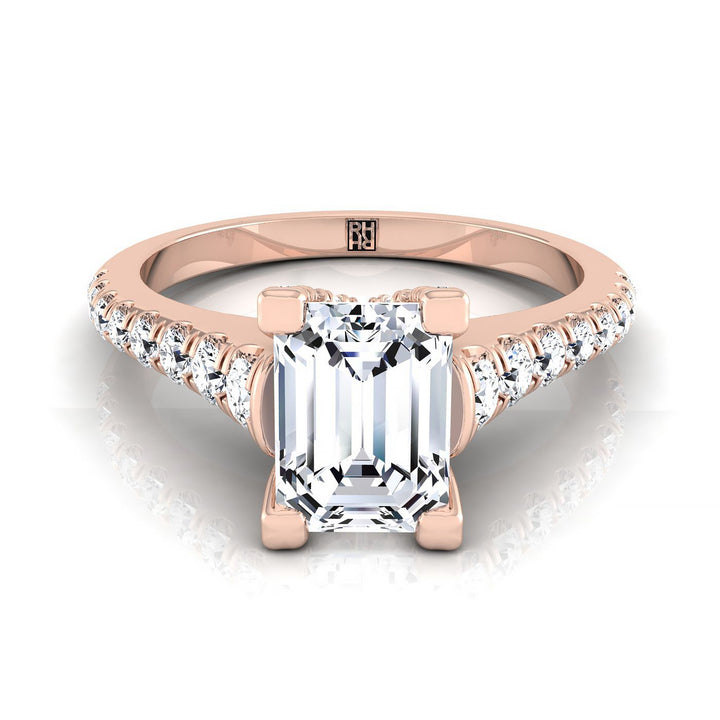14K Rose Gold Emerald Cut Diamond Pave Prong Linear Engagement Ring -1/2ctw
