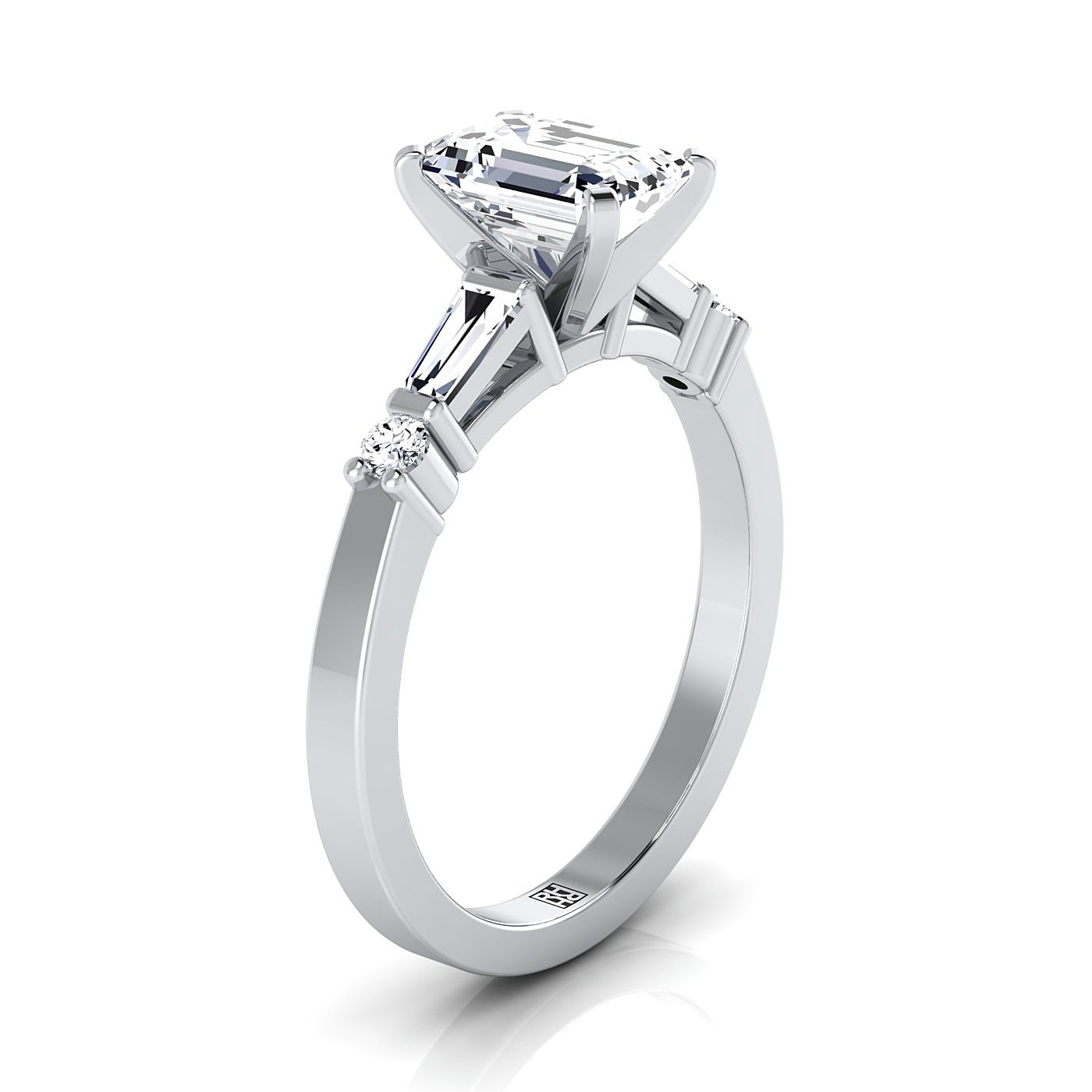 Classic Diamond Engagement Ring Showcasing An Emerald Cut Center Highlighted By Tapered Baguettes And Brilliant Cut Diamonds (h-i/vs 0.25 Ctw) Beautifully Channel And Prong Set In 14k White Gold