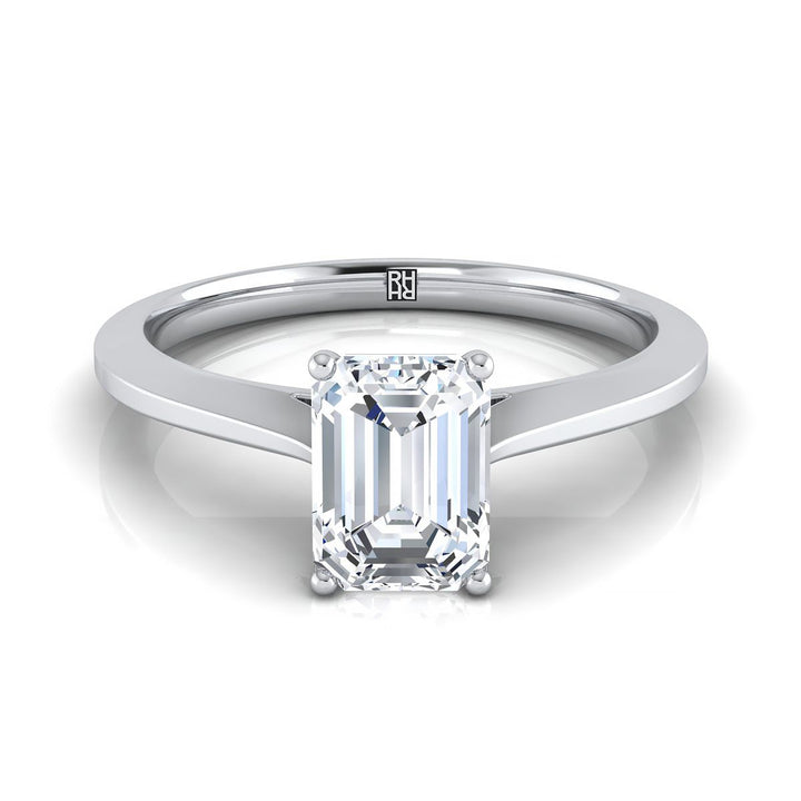 Understated Elegance, This Emerald Cut Diamond Engagement Ring Showcases A Graduated Beveled Shank With Cathedral Setting In 14k White Gold.