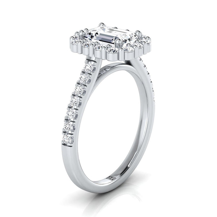 14K White Gold Emerald Cut Diamond Shared Prong Halo Engagement Ring -5/8ctw