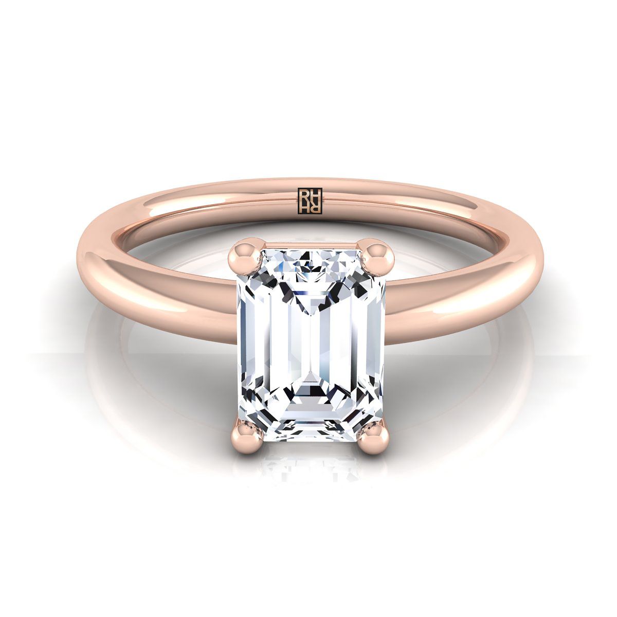 Classic And Elegant, This Emerald Cut Diamond Solitaire Engagement Ring Showcases A 4 Prong Setting With Rounded Shank In 14k Rose Gold.