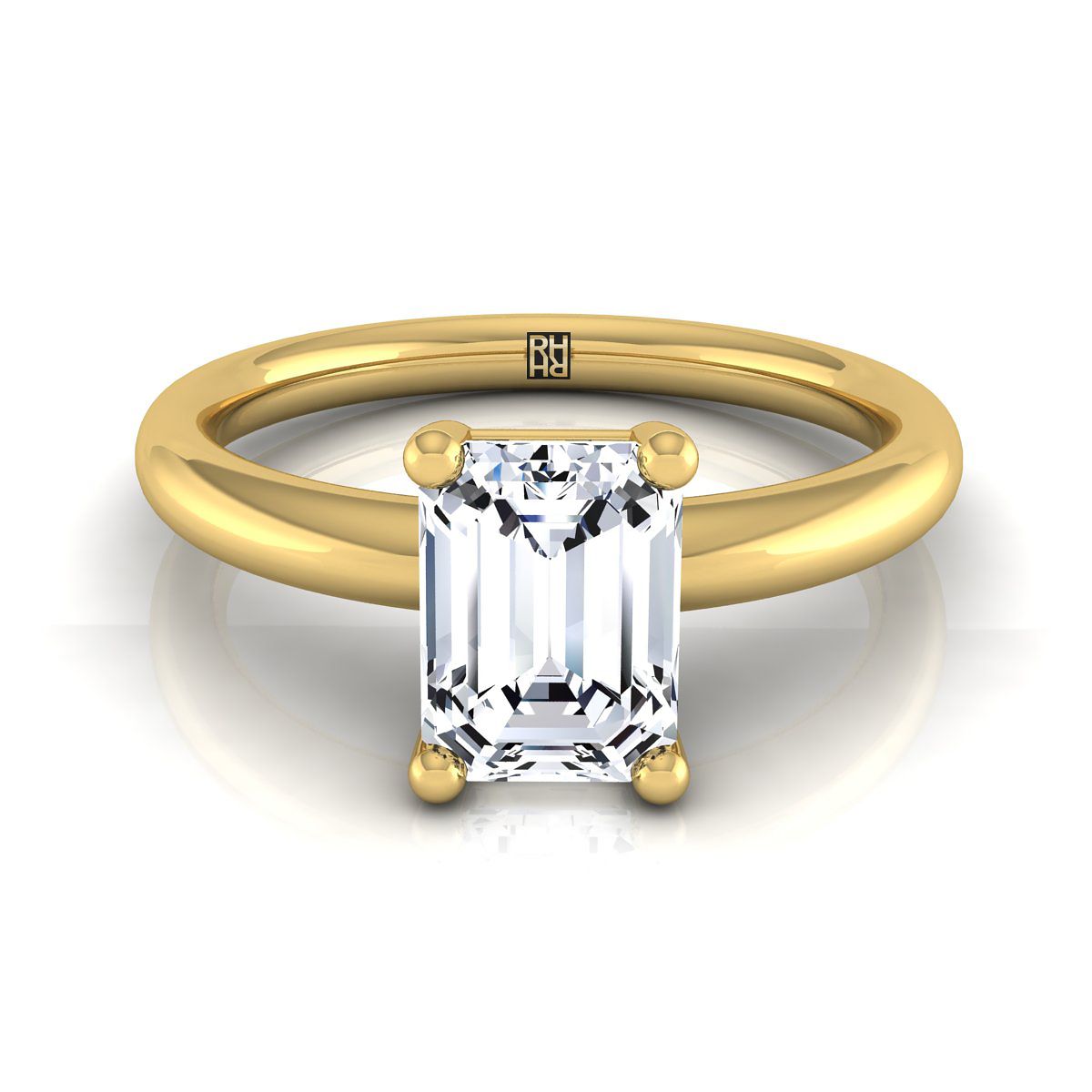 14K Yellow Gold Emerald Cut Rounded Comfort Fit Solitaire Engagement Ring