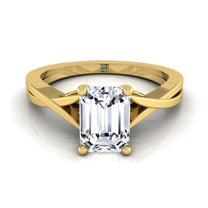 18K Yellow Gold Emerald Cut Delicate Twist Solitaire Engagement Ring