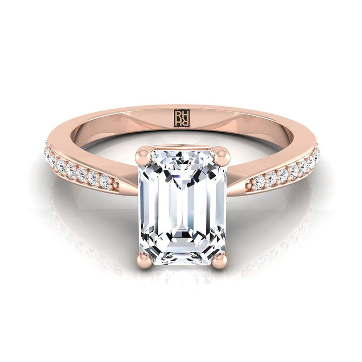 14K Rose Gold Emerald Cut Diamond Tapered Pave Engagement Ring -1/8ctw