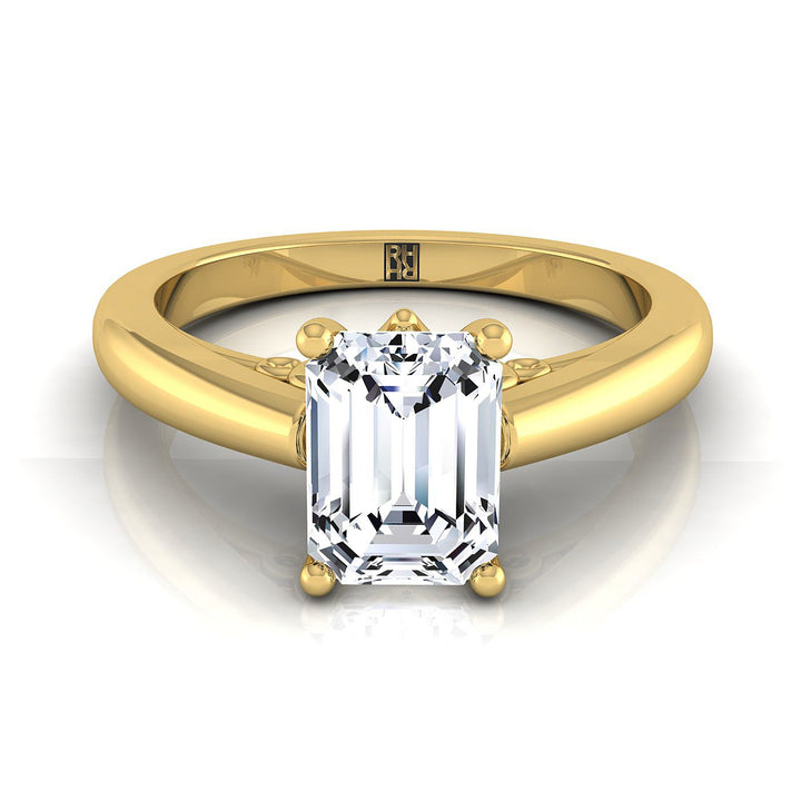 18K Yellow Gold Emerald Cut Scroll Gallery Comfort Fit Solitaire Engagement Ring