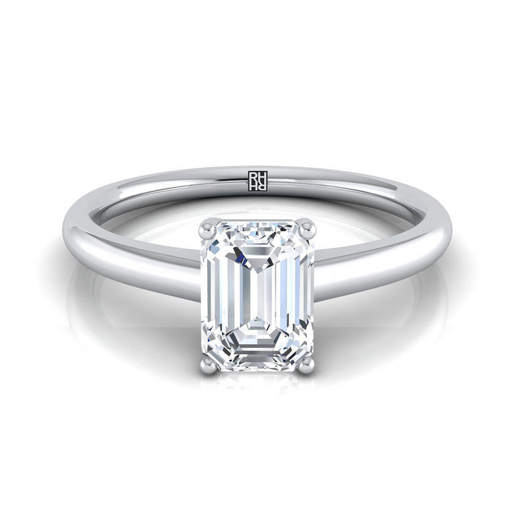 14K White Gold Emerald Cut Contemporary Comfort Fit Solitaire Engagement Ring