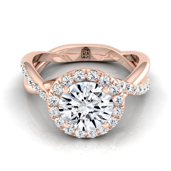 14K Rose Gold Round Brilliant Diamond Twisted Vine Halo Engagement Ring -1/2ctw