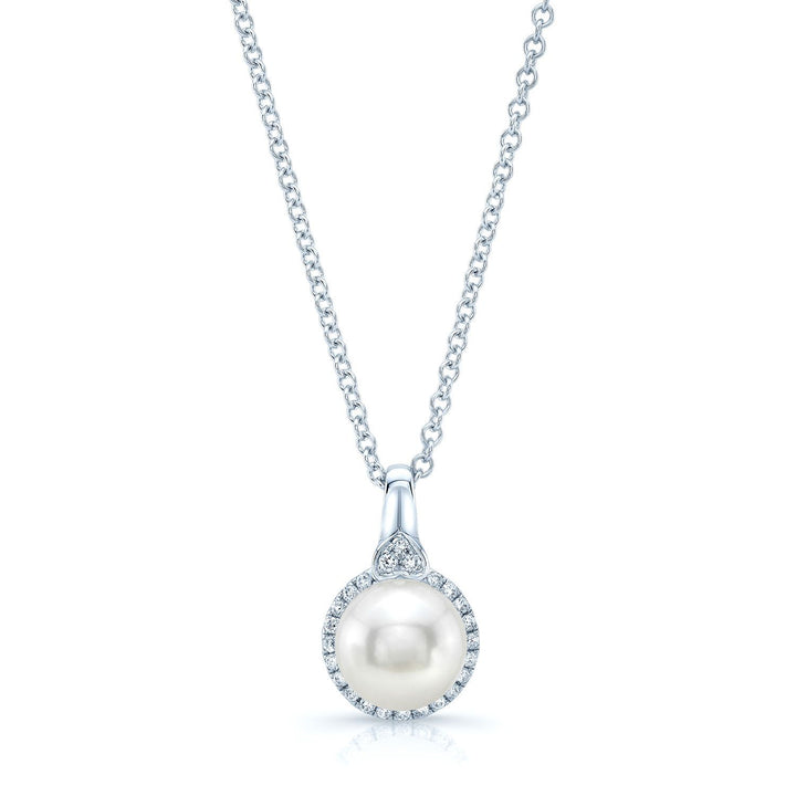 Fresh Water Pearl And Diamond Halo Pendnat In 14k White Gold