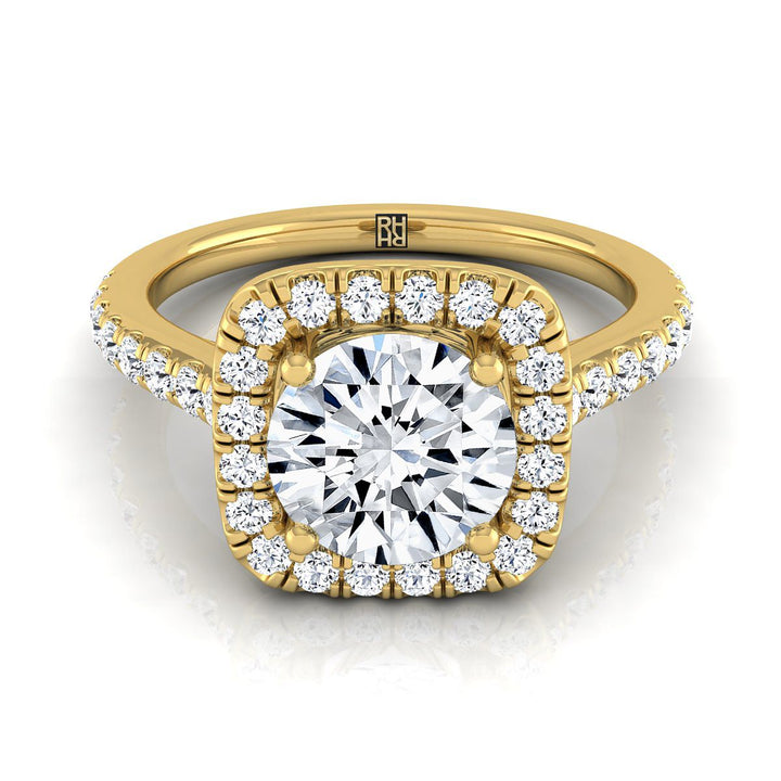 Classic With A Bold Twist, This Diamond Square Halo With A Pave Shank Ring Showcases Brilliant Cut Diamonds (h-i/vs 0.50ctw) Beautifully Set In A Classic 14k Yellow Gold Setting.