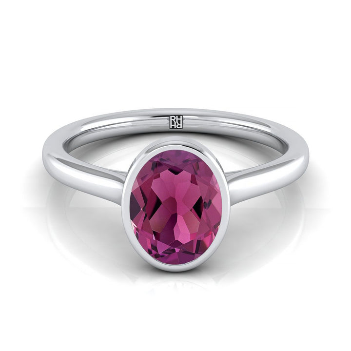 14K White Gold Oval Garnet Simple Bezel Solitaire Engagement Ring