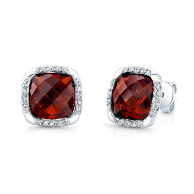 Garnet Cushion And Pave Diamond Earrings In 14k White Gold