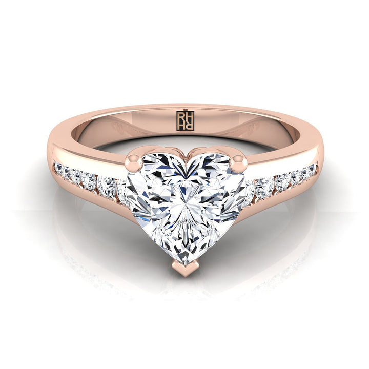 14K Rose Gold Heart Shape Center Contemporary Tapered Diamond Channel Engagement Ring -1/6ctw