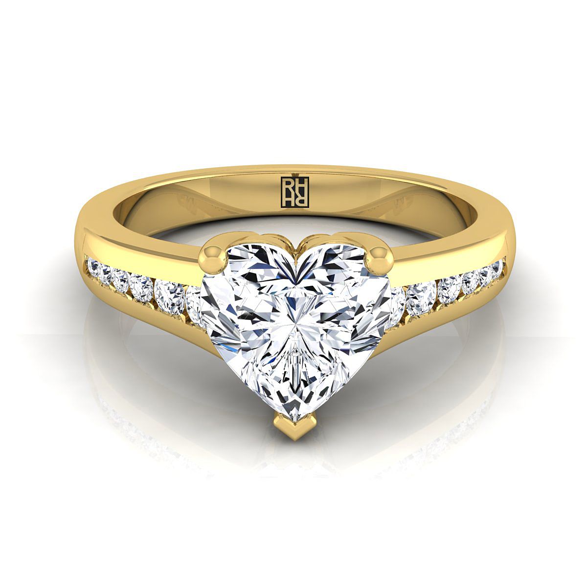 14K Yellow Gold Heart Shape Center Contemporary Tapered Diamond Channel Engagement Ring -1/6ctw