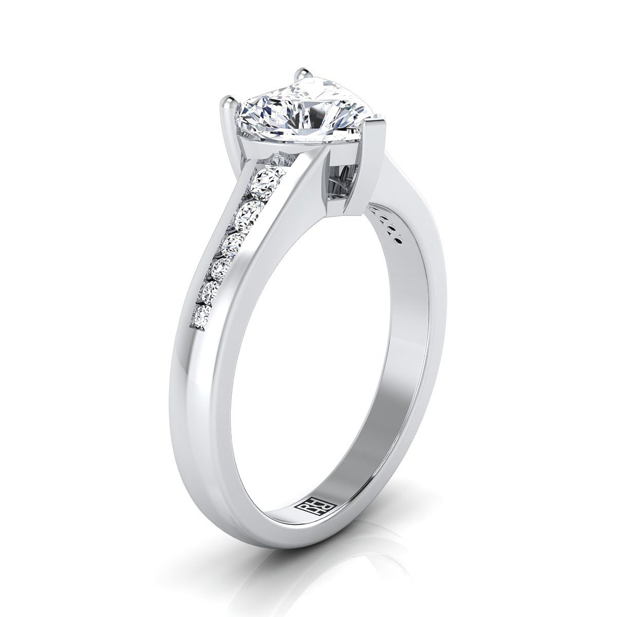 18K White Gold Heart Shape Center Contemporary Tapered Diamond Channel Engagement Ring -1/6ctw