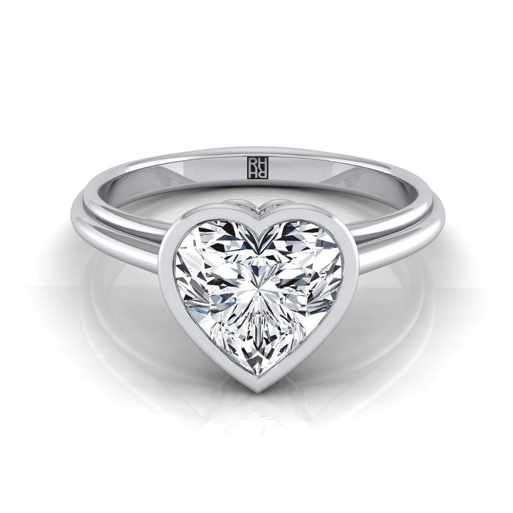 Understated Elegance, This Heart Shape Diamond Engagement Ring Setting Showcases A Bezel Set Diamond Solitaire In A Classic Platinum Setting.